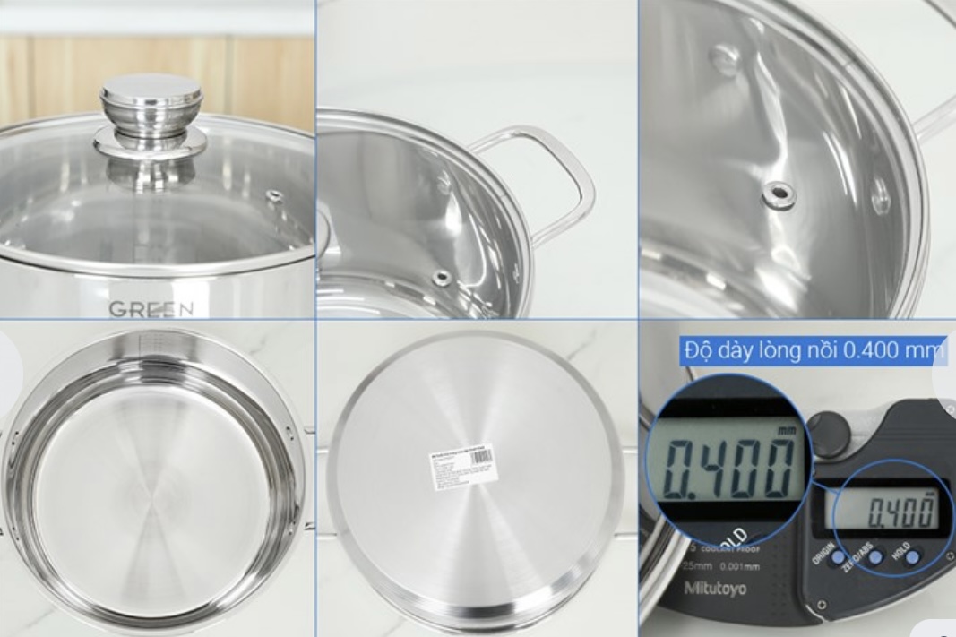 • Đáy gồm 5 lớp: inox 304 - nhôm - sắt - nhôm - inox 430,truyền nhiệt nhanh, bắt từ hiệu quả.