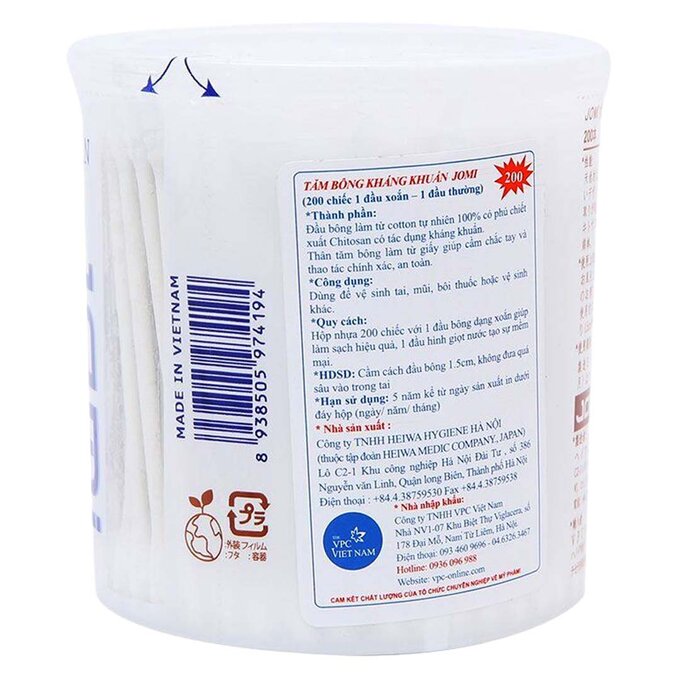 Bông Tăm Jomi Kháng Khuẩn (200 Que) là sản phẩm bông tăm chăm sóc sức khỏe đến từ thương hiệu Jomi của Nhật Bản, được thiết kế 2 đầu: một đầu hình giọt nước và một đầu hình xoắn giúp làm sạch tối ưu và thao tác dễ dàng tiện lợi.
