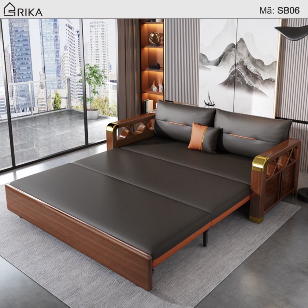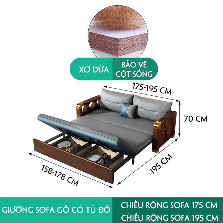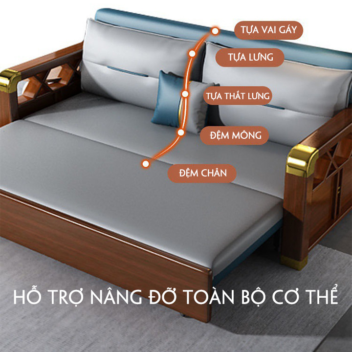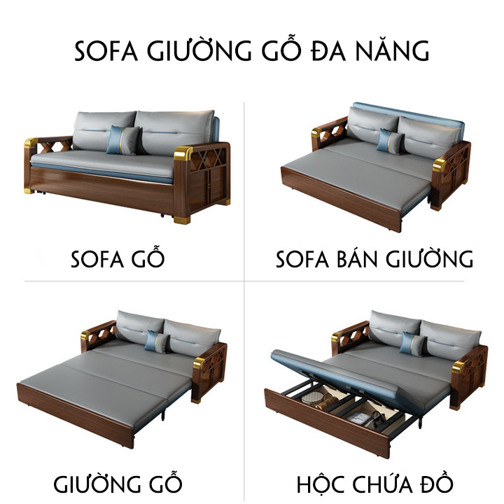 [ FREESHIP] Giường Sofa Thông Minh, Ghế sofa Cao Cấp, Giường Sofa Tay Gỗ Khung Thép Có Ngăn Chứa Đồ Nhập Khẩu Đệm Cao Su 1,95m x 1m9