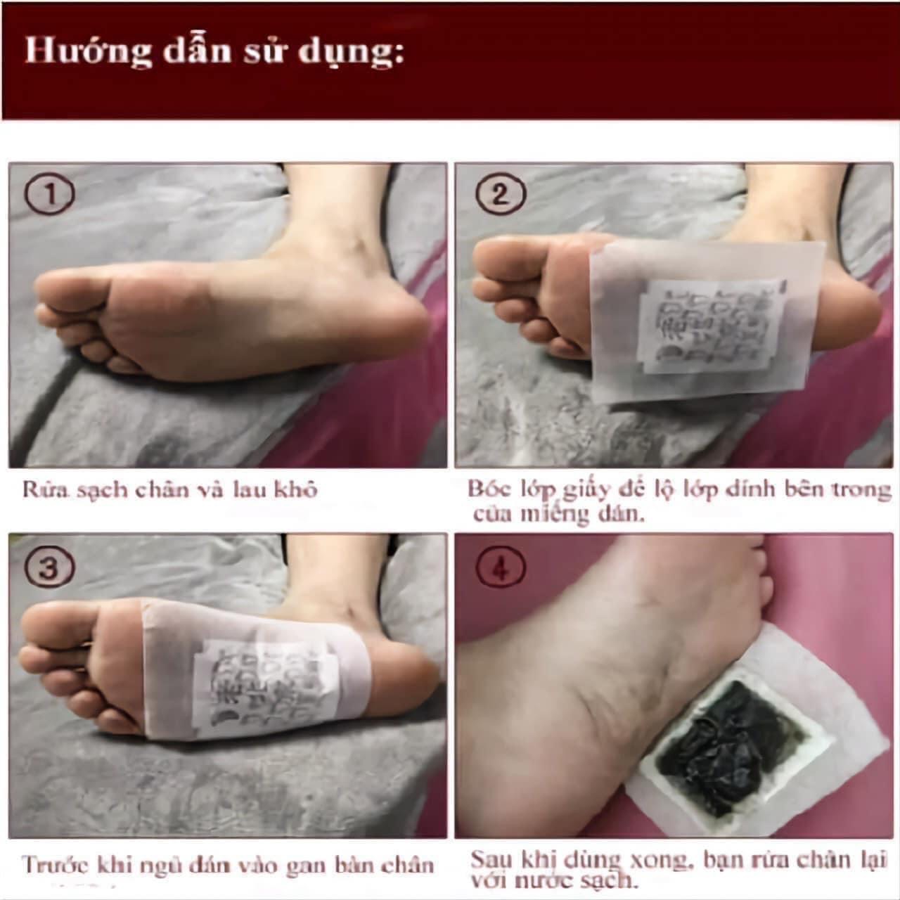 Trước tiên rửa chân thật sạch sau đó dán vào lòng bàn chân trước khi đi ngủ, bạn sẽ thấy kết quả rõ rệt chỉ sau 6-8 giờ sử dụng.