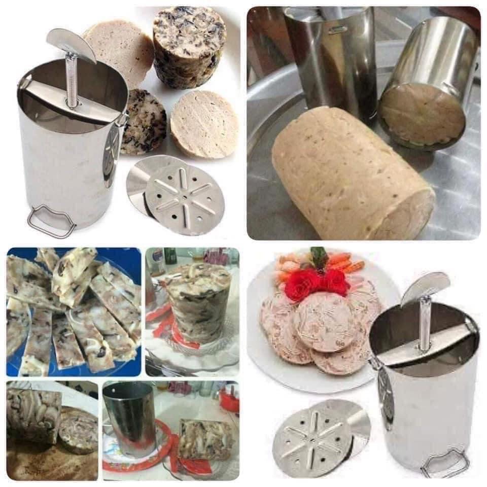 - Sản phẩm gồm: 01 khuôn hình trụ tròn + 02 đáy + 01 thanh nén giò.
