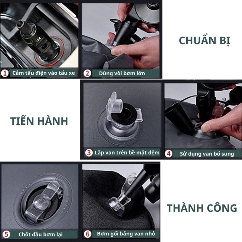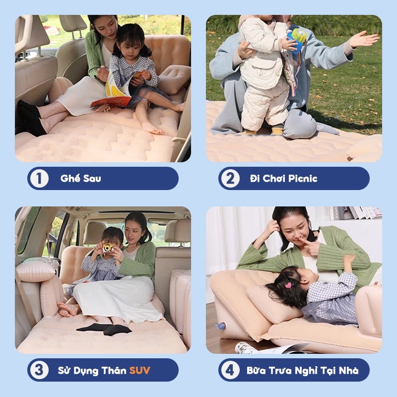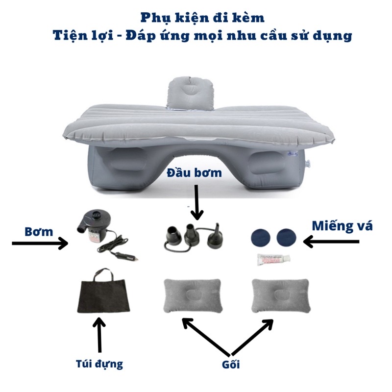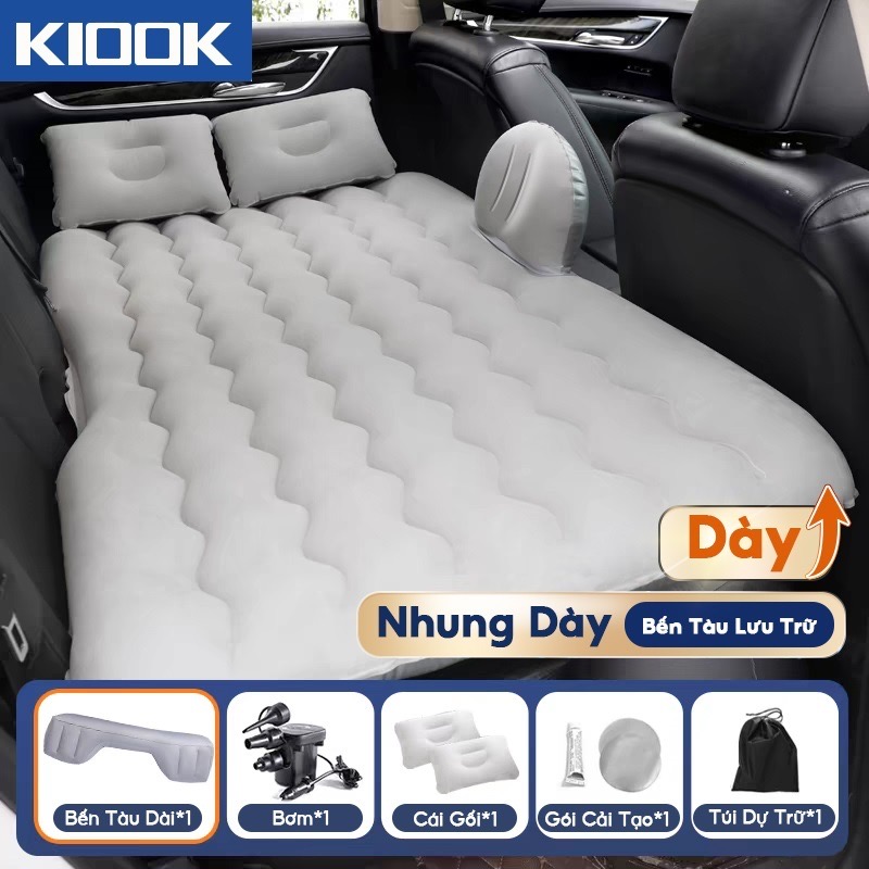 KIOOK Đệm Hơi Ô Tô, nệm hơi xe ô tô cao cấp hàng dày loại 1 tặng kèm bơm điện và bộ gối