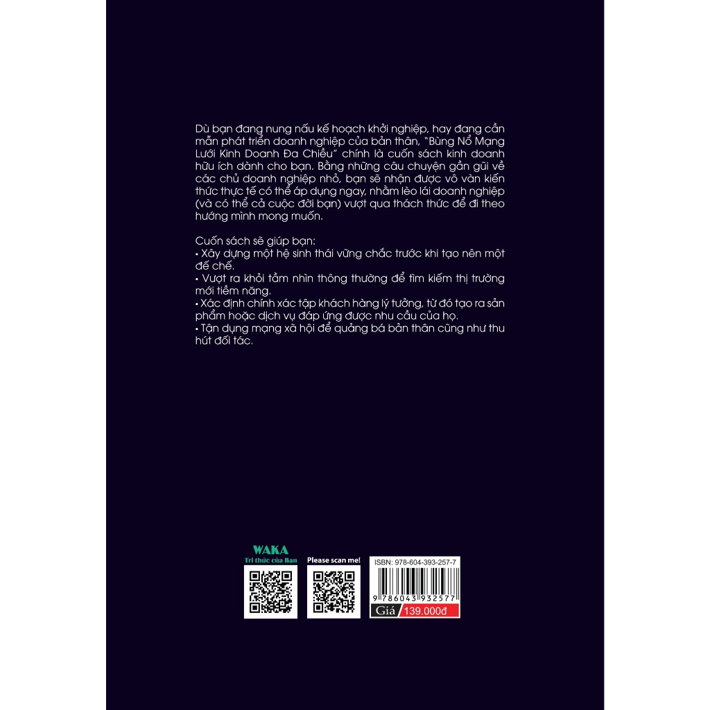 Dù bạn đang nung nấu kế hoạch khởi nghiệp hay đang cần mẫn phát triển doanh nghiệp của bản thân “Bùng nổ mạng lưới kinh doanh đa chiều” chính là cuốn sách kinh doanh hữu ích dành cho bạn. Bằng những câu chuyện gần gũi về các chủ doanh nghiệp nhỏ, bạn sẽ nhận được vô vàn kiến thức thực tế có thể áp dụng ngay, nhằm lèo lái doanh nghiệp và có thể cả cuộc đời của bạn vượt qua những thách thức để đi theo con đường mà mình mong muốn.