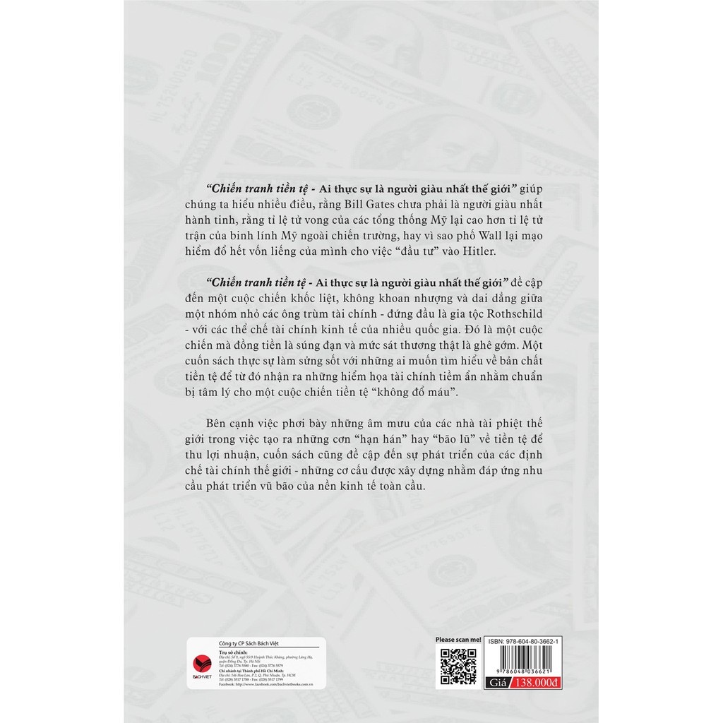 “Chiến tranh tiền tệ - Ai thật sự là người giàu nhất thế giới” đề cập đến một cuộc chiến khốc liệt, không khoan nhượng và dai dẳng giữa một nhóm nhỏ các ông trùm tài chính – đứng đầu là gia tộc Rothschild – với các thể chế tài chính của nhiều quốc gia. Đó là một cuộc chiến mà đồng tiền là súng đạn và mức sát thương thật sự ghê gớm.