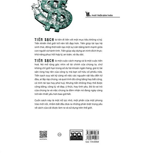 Tiền sạch là tiền đi liền với một mục tiêu không vị kỷ. Tiền khiến thế giới trở nên tốt đẹp hơn. Tiền giúp tái tạo hệ sinh thái, đồng thời kiến tạo một sự cân bằng lành mạnh giữa con người và hành tinh. Tiền giúp xây dựng an ninh đích thực: khả năng phục hồi hợp lý, an toàn, và lâu dài.