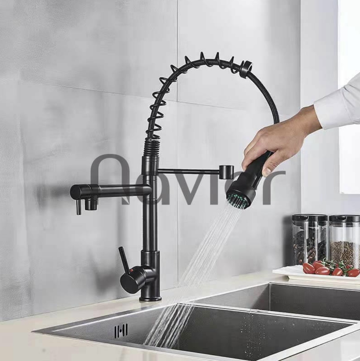 Vòi rửa chén lò xo kép đồng thau sơn tĩnh điện Navier NV-213D