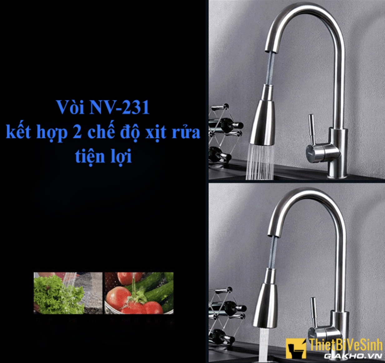 Vòi đa năng, đầu vòi có thể kéo dài vệ sinh tiện lợi